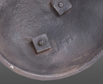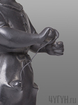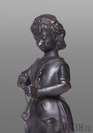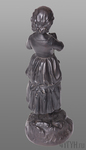 На подставке в виде неровного камня изображена девочка, стоящая в полный рост. В руке она держит иголку. Юбка, которую носит девочка, драпирована, что передано с помощью обильной чеканки.