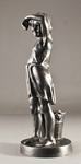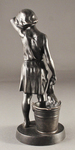На круглой подставке изображена девочка в платье, вытирающая рукой лоб. В другой, опущенной, руке она держит тряпку, которая лежит в ведре рядом с девочкой. В лице девочки хоть и можно увидеть усталость, но она довольна проделанной работой.
