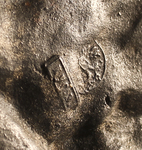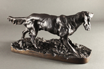 На неровной подставке изображен сеттер в охотничьей стойке. Фигура сильно отчеканена.