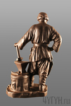 Изображена фигура кузнеца с наковальней на пне около него. Кузнец ставит кувалду на наковальню и опирается на неё. Скульптура богата отчеканенными элементами.