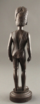 Изображен солдат в рост на маленькой круглой подставке. На голове у него длинная папаха, ноги его немного согнуты в коленях. Статуэтка имеет обтекаемую форму и выглядит торжественно. Папаха солдата отчеканена.