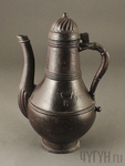 Изображён симметричный кувшин обтекаемой формы с откидывающейся крышкой. Кувшин становится гораздо уже в горле. Кувшин украшен резьбой в виде колец. Верх кувшина отчеканен и имеет узор.