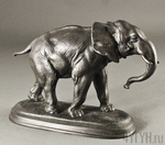 На овальной подставке изображена фигура слона в движении, скрутившего свой хобот. С помощью различных приёмов скульптура максимально точно передаёт внешний облик животного. Кожа и складки на теле переданы с помощью чеканки, а с помощью рельефной поверхности скульптура способна переливаться на свету.