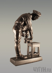 На квадратной подставке изображена фигура чистильщика. Он ставит свою ногу на табурет и чистит свой собственный ботинок тряпкой. Подставка и табурет не имеют деталей и выглядят просто, за счёт чего выделяется фигура самого чистильщика: его униформа имеет множество складок, которые создают тень при свете. Лицо чистильщика показывает его сосредоточенность над своей работой.