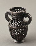 Изображен не очень высокий узорчатый кувшин с толстыми ручками. Кувшин абсолютно симметричен.