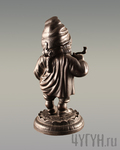 Изображена небольшая фигура гнома на круглой подставке. Он одет в колпак и халат, курит трубку. Данная статуэтка довольно сюрреалистична; гном выполнен в свободном, авторском стиле. Одежда гнома имеет множество складок, отчего статуэтка имеет очень детализированный облик.