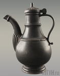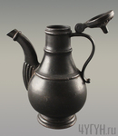 Изображён симметричный кувшин с откидывающейся крышкой. Крышка кувшина и основание носика отчеканены и создают узоры.