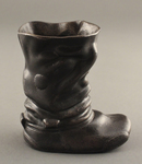 Изображена пепельница в виде невысокого сапога. Изделие имеет причудливый, предельно высокий для пепельницы облик. Особенностью литья данной пепельницы является множество складок и изгибов на её поверхности, что красиво воссоздаёт кожу в качестве материала.