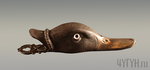Изображён зажим для бумаги в виде головы селезня. Голова в точности повторяет форму и вид головы настоящей птицы. Клюв является зажимом. Рукоятка зажима отделена от головы небольшим уплотнением.