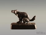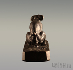 На платформе изображён пёс в процессе дефекации, в натуральной для этого процесса позе. Платформа не шире самого пса и довольно высокая.