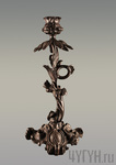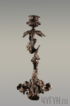 Изображен подсвечник в виде длинного завитого цветка на большой подставке.