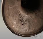 Изображен симметричный высокий, многоуровневый подсвечник. Имеет обтекаемую форму, в некоторых местах сужен.
