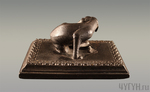 Изображено пресс-папье в виде чешущегося пса на подставке. Подставка окантована небольшим узором. Данная скульптура примечательна тем, что является одним из самых ранних изделий чугунного литья в России.