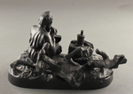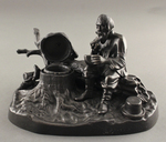 Изображён крестьянин-дровосек, сидящий на поваленном стволе дерева, в обеих руках держит хлеб. Чернильница одинарная; гнездо для чернил в виде пня со стоящим на нем туеском. Данная скульптура имеет множество мелких деталей. У мужчины довольно живое выражение лица, что придаёт ей красоту.