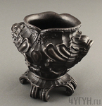 Изображена небольшая и вместительная ваза на маленькой ножке. Ваза украшена разнообразными узорами и отлита таким образом, что якобы имеет два слоя. Верхний слой немного оттянут в стороны, создавая подобие ручек.