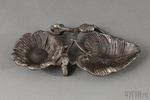 Изображена двойная пепельница: одна изображена в виде цветка, а другая — в виде листа. Обе части соединены друг с другом стеблем; имеют резьбу для воссоздания натурального образа.