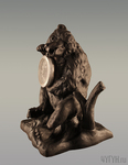 Скульптура состоит из подставки, на которой изображён пень, и самой фигуры медведя, которая установлена на пне. Медведь, держит в лапах настоящие стрелочные часы и склоняет к ним голову, прислушиваясь к ним. Пень украшен листьями, рядом с ним растёт небольшое деревце.