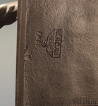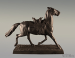 На продольной узкой подставке изображена фигура оседланной лошади в движении. Об этом свидетельствует её уставленный вдаль взор и развевающийся хвост с резьбой. Фигура лошади очень детализирована: благодаря чеканке видны мускулы на её ногах.