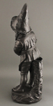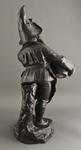 Изображена фигура гнома, держащего в руках пустой горшок. Гном стоит на отчеканенной подставке, которая перерастает в пень, на который он немного опирается.