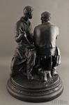 На круглой, симметричной подставке изображены Ефим Алексеевич (1774-1842) и Мирон Ефимович (1803-1849) Черепановы, отец и сын, инженеры и изобретатели. Мужчины умещаются в пределах границ подставки, что придаёт скульптуре аккуратности.