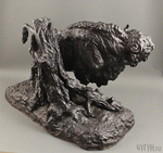 Данная скульптура состоит из неровной, большой подставки и фигуры зубра, стоящего около старой коряги. Зубр изображён в движении с уставленной вперёд головой.