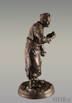 Изображена фигура бедно одетого мужчины на небольшой подставке. Он носит головной убор наподобие тюрбана. Халат его отчеканен, чтобы изобразить складки и поношенность.