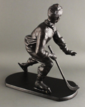 Изображен пригнувшийся юноша на коньках, смотрящий в сторону и держащий клюшку в одной руке. Благодаря идеально ровной подставке отлично передаётся динамика всей скульптуры.