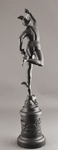 Фигура обнаженного юноши в рост, в изящной танцевальной позе. Под его опорной ногой – запрокинутая голова божества ветра - Фавония ( греч.- Зефир). Правая нога согнута в колене и отведена назад; в левой руке - жезл, правая поднята вперед и вверх. На ногах крылышки, на голове крылатый шлем. Подставка высокая цилиндрическая, с рельефным изображением путти.