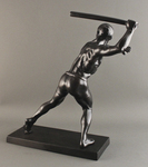 На прямоугольной подставке изображён молодой человек, готовый ударить своей битой. Фигура очень изящна и динамична благодаря сильному наклону городошника.