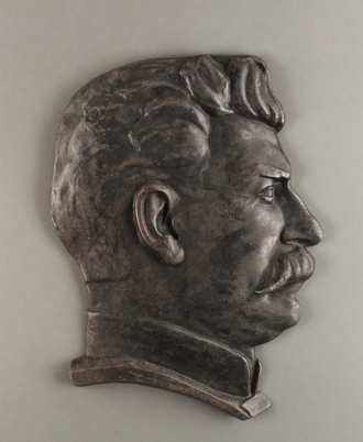 Изображён плоский барельеф Сталина с большим вниманием к деталям: его лицо имеет грубоватую поверхность, волосы очерчены.