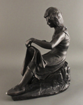Изображена фигура сидящей девушки, занимающейся вышиванием . В одной руке она держит пяльцы, а в другой - иголку. По выражению лица девушки заметно, что она очень сосредоточена на своём деле. Вместе с подставкой, которая выполняет роль табурета для вышивальщицы, скульптура смотрится очень гармонично.