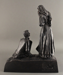Изображена косая подставка, на которой стоит склонившаяся женщина, а рядом с ней находится полулежащий мужчина. У него скованы ноги и усталое лицо, просящее о помощи. Женщина смотрит на него с состраданием.