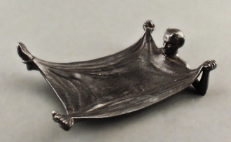 Изображена пепельница в виде лежащего Мефистофеля, укрывающегося простынёй.