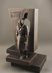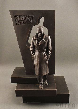 Изображена фигура Рихарда Зорге на многоэтажной подставке. В стене позади него вырезан его силуэт и написаны памятные слова. Скульптура является миниатюрной копией существующего памятника Рихарду Зорге, который находится в Москве.