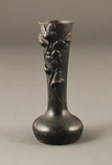 Изображена высокая ваза причудливой формы с объёмным и крупным орнаментом в виде цветов фиалки на ней. Идеально подходит для содержания цветов с небольшим резервуаром внизу для воды.