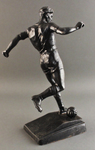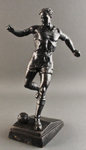 На подставке изображён мужчина, готовый ударить по лежащему перед ним мячу. Как и у большинства статуэток из серии спорта, здесь применяется чеканка для подчёркивания мускулатуры спортсмена и придания динамичности изделию.