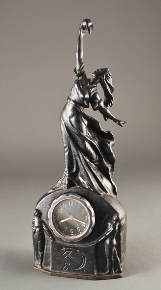 Женщина, держащая над головой 1-й искусственный спутник Земли (запущенный на орбиту 4 октября 1957 года). Монумент, на котором она стоит, является подчасником и украшен перекрещивающимися серпом и молотом.