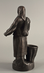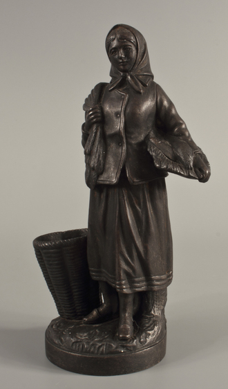 Изображена фигура женщины-рыбачки с большой корзиной на небольшой подставке. Рыбачка облачена в длинную юбку, платок и непромокаемую куртку, что свидетельствует о суровости её работы.