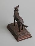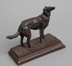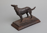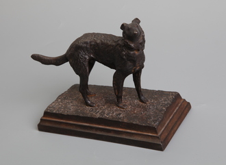 Изображено пресс-папье в виде собаки породы борзая на подставке. Шерсть собаки очень тщательно отчеканена. Сама собака смотрит вдаль с интересом.