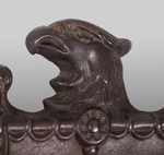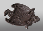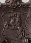 Барельеф представляет собой большого орла с гербом во всю грудь. На груди орла находится изображение паруса с барочным щитом в центре. На щите изображён всадник на вздыбленном коне.
