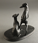 На овальной подставке изображены две стоящие рядом собаки-левретки. Одна из них пятится от другой, и они смотрят друг на друга, что придаёт реалистичность и живость статуэтке.