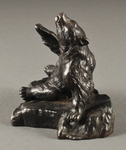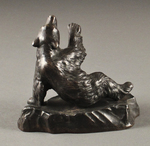 На подставке в виде камня изображён лежащий медведь, немного приподнимающийся вверх. Как и свойственно авторам скульптур в стиле анималистики, шерсть медведя сильно отчеканена и лоснится. Отчеканен также и камень, на котором медведь лежит.