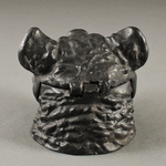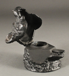 Изображена чернильница в виде головы медведя, без подставки. Шерсть на голове отчеканена. Верхняя часть головы является крышкой и откидывается, открывая резервуар для чернил с отшлифованными гранями вокруг него.