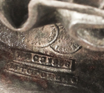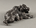 Изображено пресс-папье в виде лежащей на боку медведицы, без подставки. Лоснящаяся шерсть её передана с помощью чеканки. Резко выпадают из композиции лапы медведицы, отлитые иным образом.