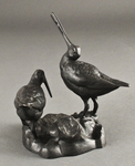 На подставке в виде некоего природного объекта изображены две цапли, стоящие на разных уровнях. Одна из них приподнимает голову кверху. Перья и другие части тел птиц отлиты очень чётко и реалистично.
